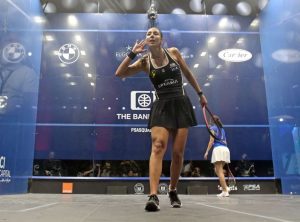Women’s top seeds Hania El Hammamy and Nour ElSherbini won in contrasting fashion – Hammamy getting the better of a long three-game tussle with Amina Orfi while Sherbini maintained her unbeaten record over Olivia Weaver as the American retired injured early in the second game.