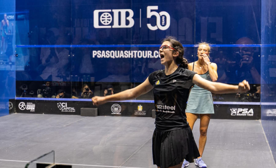 [1] Nouran Gohar (EGY) 3-2 [3] Hania El Hammamy (EGY) 9-11, 11-6, 7-11, 13-11, 11-8 (92m)