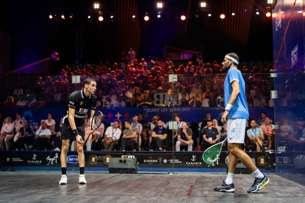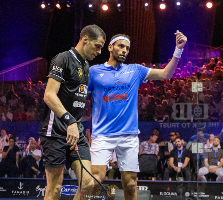 Mo made his second error of the game at that point, underlined by a “YALLA” from his opponent, court cleaning, and with a winner, Ali closed the crucial first game, 18m of extremely hard work.