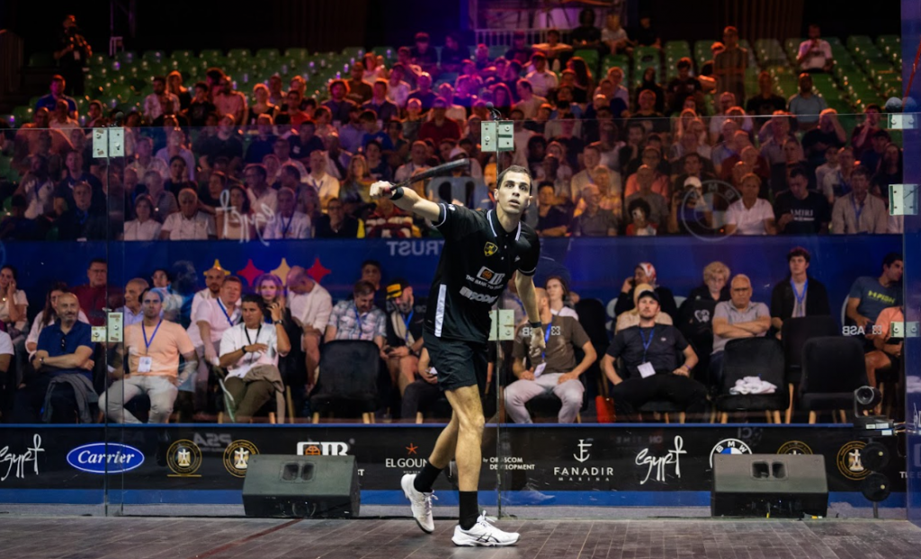 After Mohamed’s fiery performance in R3 against Youssef Soliman, all eyes were on him. But if in that match he played at an incredibly fast pace and hitting the ball very hard, today he was playing a much more subdued squash, mid pace, lots of crosscourt lobs, not his usual squash style.