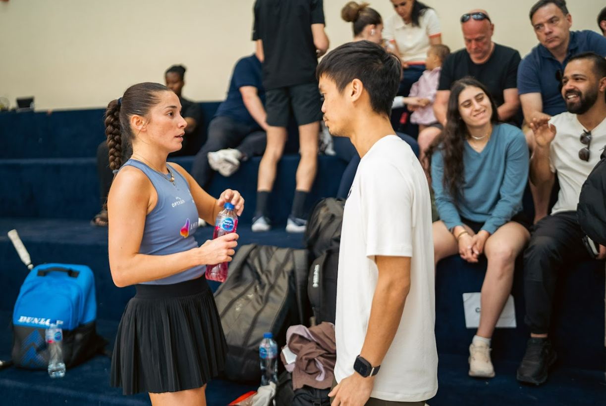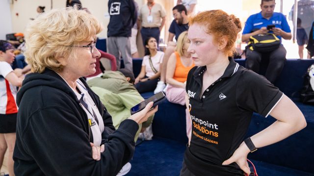 To be honest, Fayrouz dominated the first game, 5/2, 8/4 10/5. A little bit of “oh my God I’m taking the game here’ wobble, but it’s still Fayrouz, 11/7 in 8m.