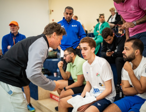 Zakaria downed sixth seed and former World Champion Tarek Momen in round one, a milestone victory for the teenager. He continued his fine form in today’s match up with Ramit Tandon who was up against it from the very start of the match. The Egyptian kept the pace high and forced Tandon into many tough movements in the opening two games, tidying up loose balls from the Indian to win games one and two both 11-7.