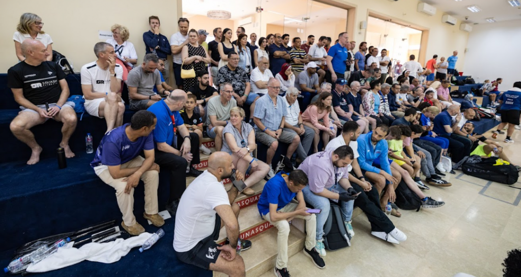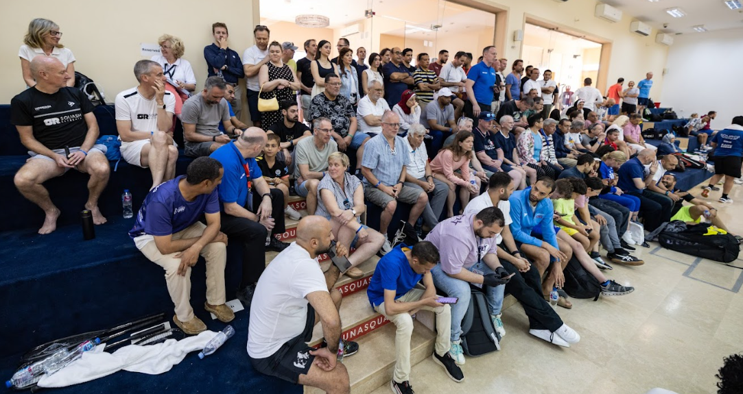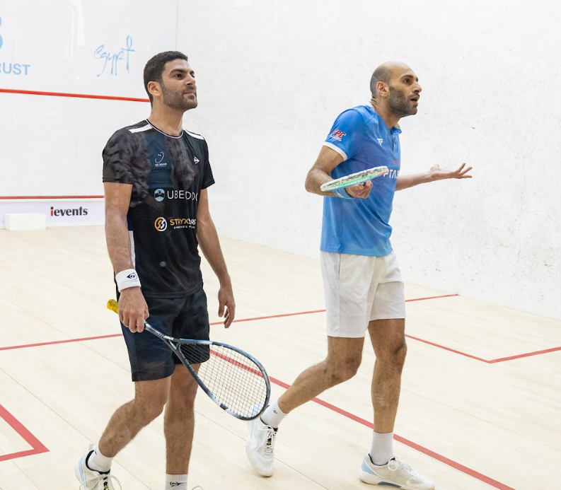 Everyone who is anyone in squash was behind the glass this afternoon to watch the Alexandria Connection battling it on the court. Both originally from Alex, Aly has been watching Marwan as he grew up, and knew how hard this was going to be for him, but also was prepared for it: years of US College Squash do that for young players.