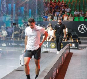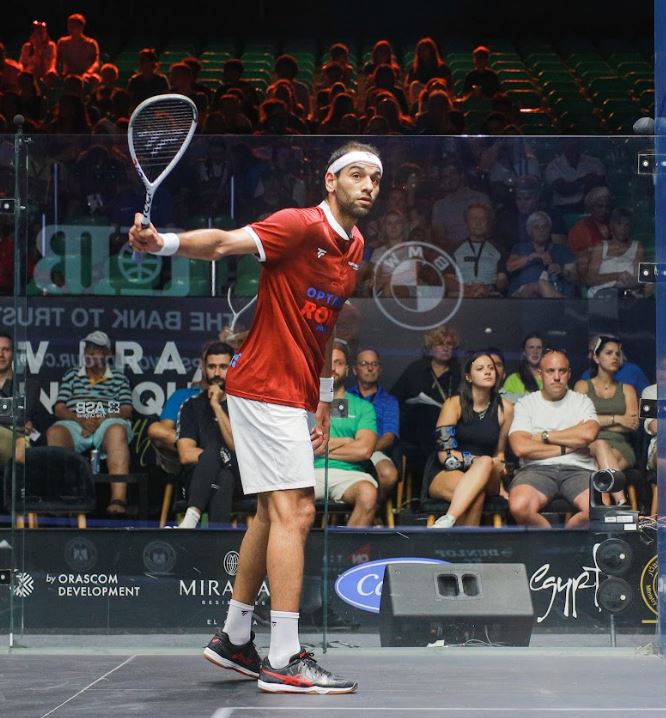 I remember that match these two played. Round three of the Egyptian Open. Finishing like 11-9 in the 5th in 75m, going to Fares. Mohamed was NOT HAPPY. It was on very warm courtside courts.