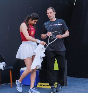 A good first game for the South African, with a very long first rally that sort of set the tone for the rest of the game. Nour, a bit surprised by the intensity of Alex I felt made a few errors in the first part of the game, 4 errors in 6 points! That doesn’t happen a lot. Five straight points for Nour from 6/6, and it’s 11/6 in the longest game of the match, 10m.