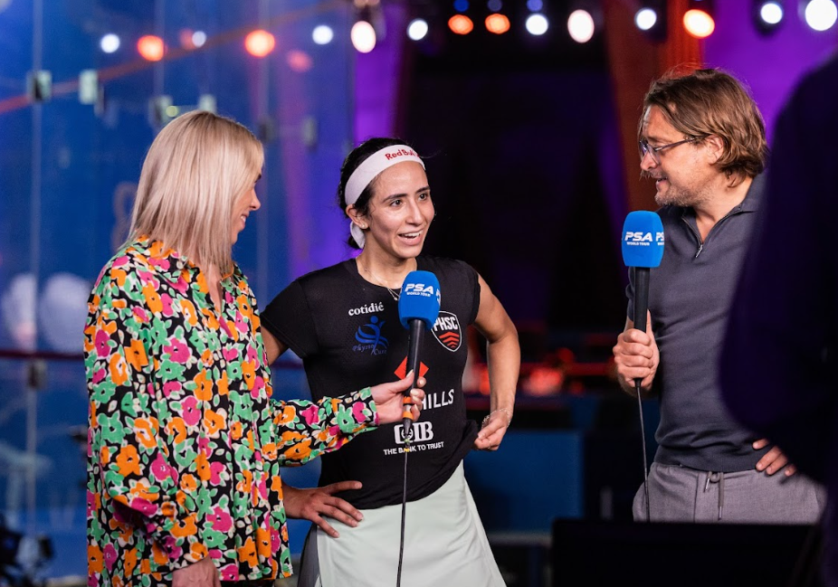 “It’s a nice feeling to see people you grow up with, playing against them. It’s always good to play against her because it’s free-flowing squash. Yesterday she played incredibly well. She hit some unbelievable drops and boasts and I was really on my toes today because she hit a couple of good ones!
